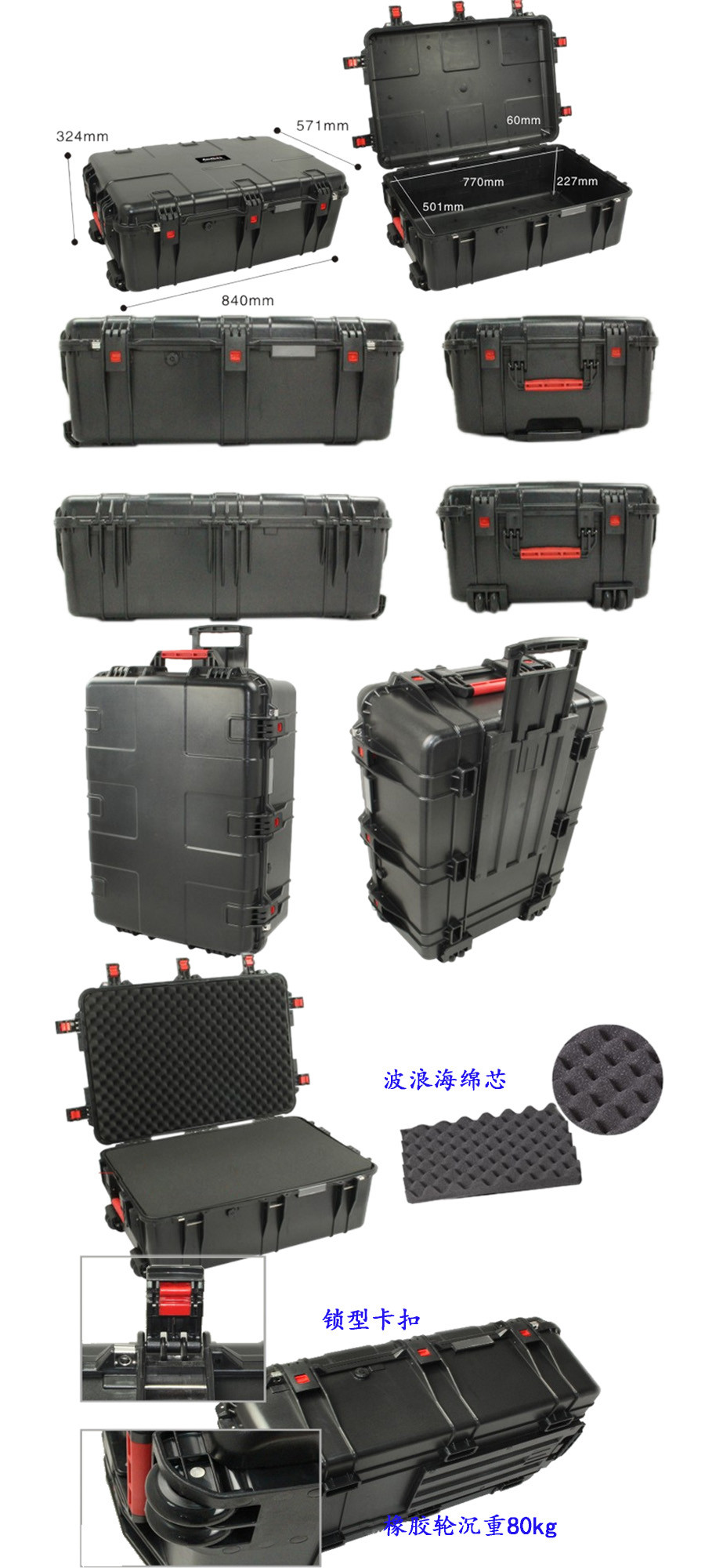 簡(jiǎn)要說明:廣泛用于傳媒、公安、消防、軍隊(duì)、航空、戶外攝影、野外考察、科學(xué)探測(cè)等眾多領(lǐng)域的高端儀器、儀表。具有高強(qiáng)度、高抗壓沖擊、防潮、絕對(duì)密封、防塵、防水等特點(diǎn)。產(chǎn)品材質(zhì):ABS原料、PP原料,箱體采用高抗沖擊的高分子聚合材料一體注塑成型,密封采用扁型彈性發(fā)泡密封橡膠條,確保防水氣密,所有較軸均采用不銹鋼材質(zhì)。