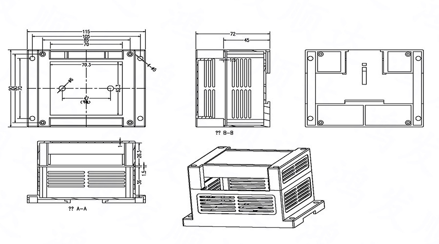 簡(jiǎn)介:廣泛應(yīng)用于電子行業(yè)中各種PLC模塊電路、控制器單元、配電器模塊等 。具有完全絕緣性保護(hù)、散熱性良好等特點(diǎn)。均采用ABS/PC原料生產(chǎn),符合ROHS環(huán)保標(biāo)準(zhǔn)、性能好、耐高溫,不加入任何再生料??筛鶕?jù)客戶要求重新開(kāi)模具。
